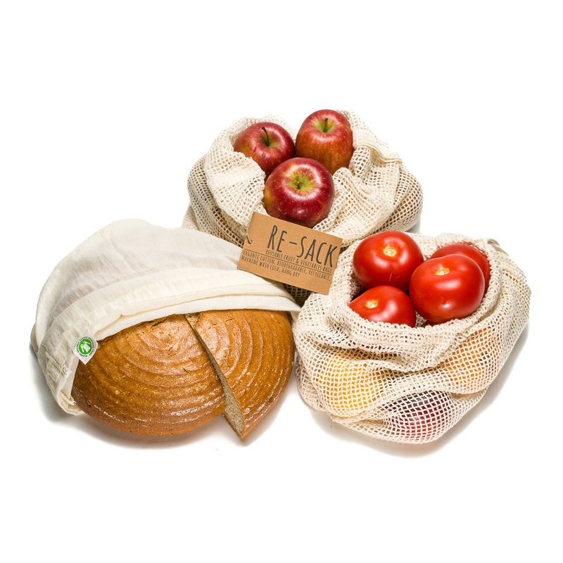 Nie mehr Einweg-Plastiksackerl für Obst & Gemüse! In diesen wiederverwendbaren Bio-Baumwollbeuteln bringen Sie auch Ihr Brot plastikfrei nachhause.