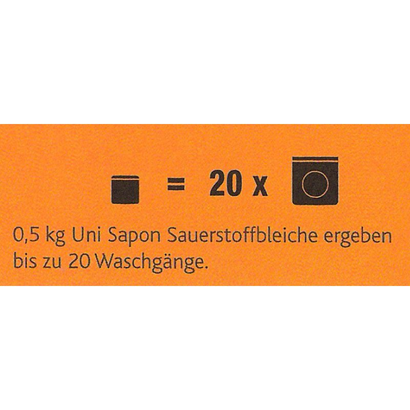 Im Gegensatz zu herkömmlichen Bleichmitteln ist die Sauerstoffbleiche von Uni Sapon frei von optischen Aufhellern, Chlor & synthethischen Bleichaktivatoren von Uni Sapon